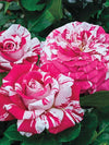 Neil Diamond™ is a show‑stopping Hybrid Tea rose that brings star‑level charisma to any garden. Named after the legendary singer‑songwriter himself and fittingly descended from the variety Rock & Roll, this rose feels like destiny in bloom. Its striking pink‑and‑white striped petals create a bold, dramatic display, while the long, elegant buds open into medium‑large flowers with 40–50 petals each. Borne on long cutting stems, Neil Diamond™ produces bloom after bloom, making it as perfect for vases as it is for landscape impact.