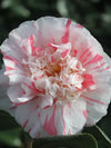 Brighten up your garden with the cheerfully contrasting blooms of Camellia 'Diakagura', a versatile evergreen Japonica shrub that brings a vibrant splash of color to the landscape. Known for its distinct anemone-form flowers and dense, evergreen foliage, this camellia is a standout specimen. The blossoms feature an elegant pink and white variegation, creating a lively and eye-catching display that pops against the dark green leaves. This adaptable shrub reaches a mature height of up to 8 feet and a width of 6 feet, making it a striking choice for a screening hedge or a beautiful, colorful accent in a mixed border.