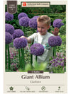 Large, round clusters of purple flowers tower over low growing foliage on a single stem.