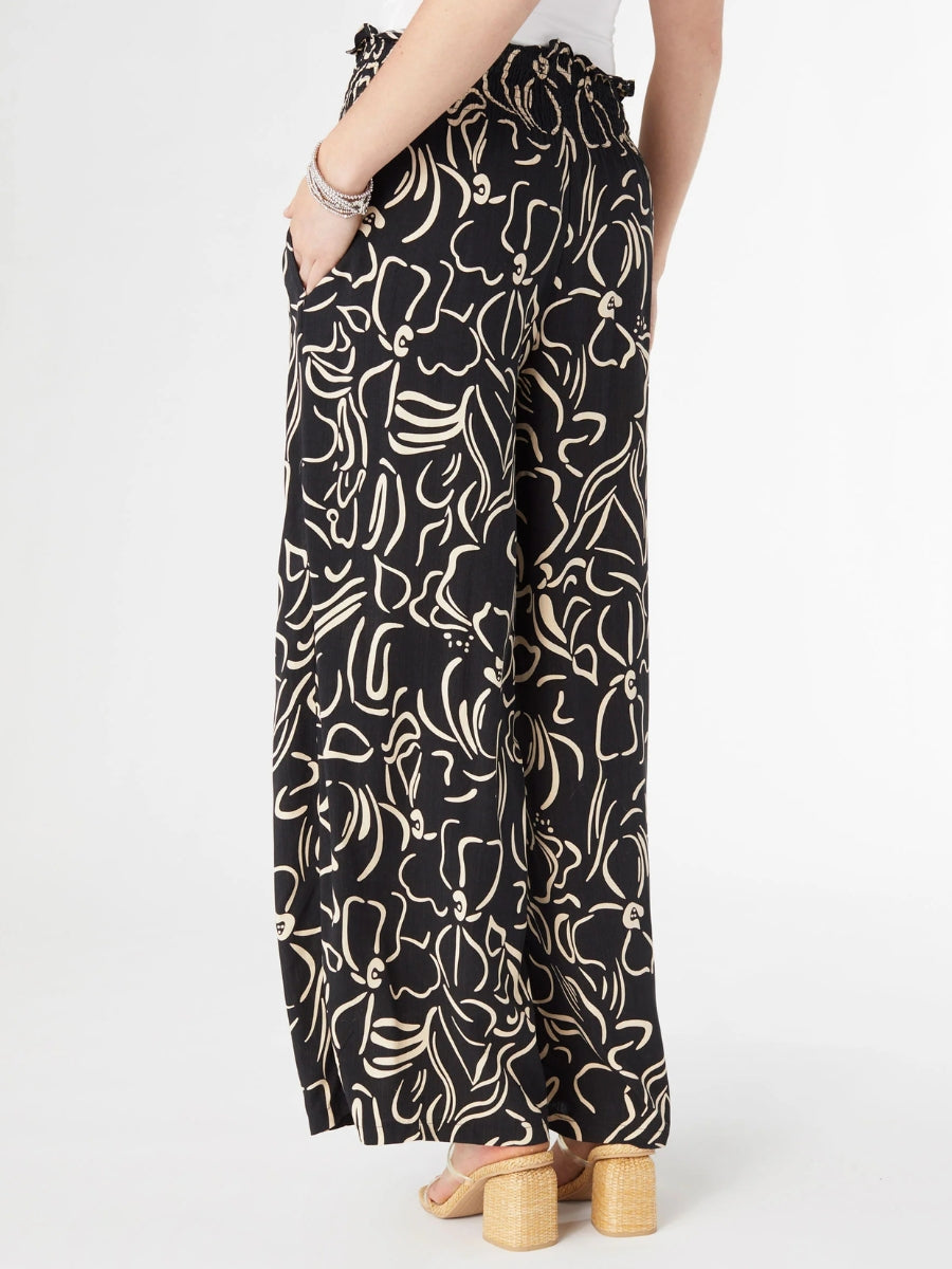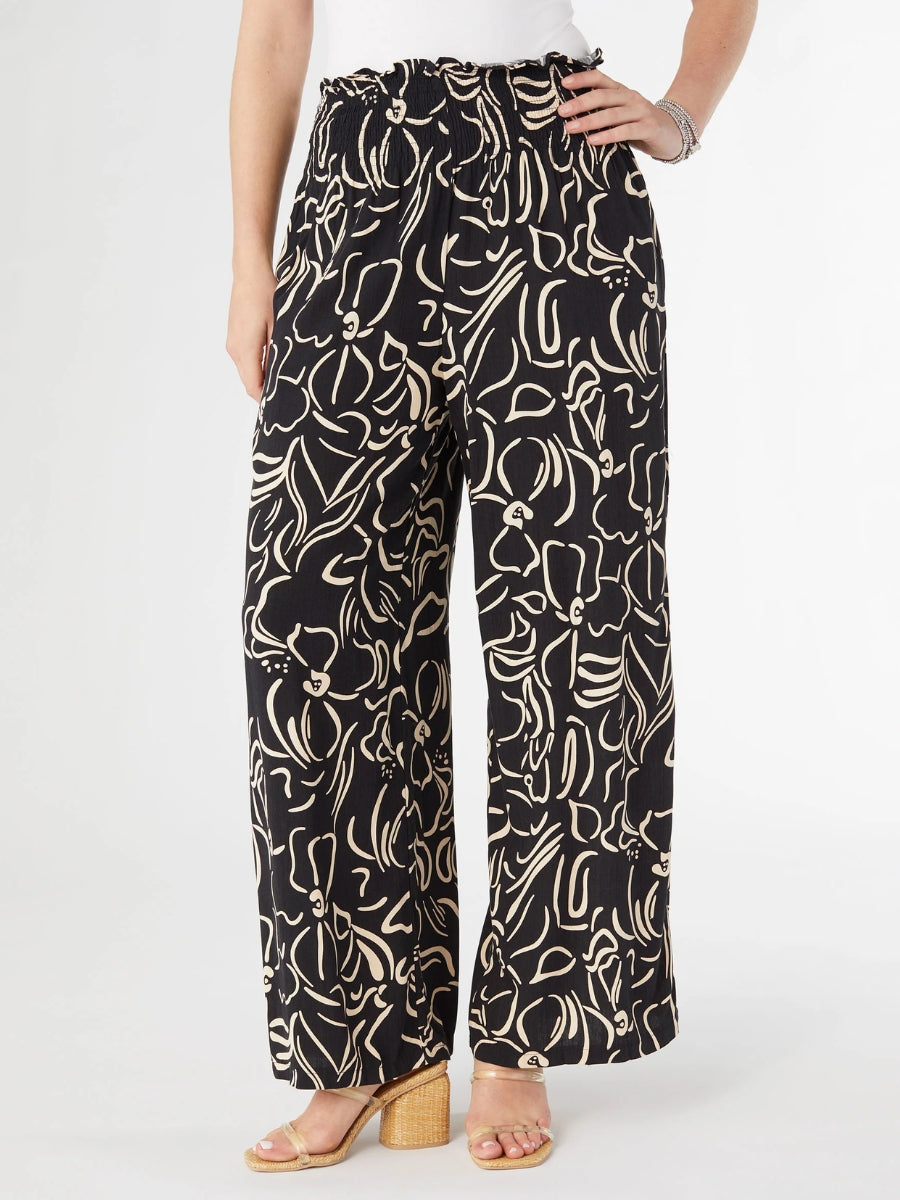 Coco + Carmen Dinara Flowy Pant with Cinched Waist - Black/Tan