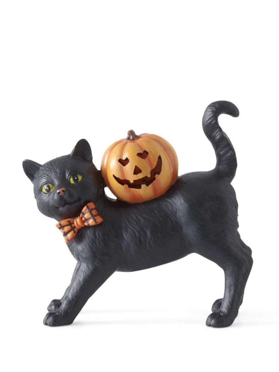 Black Resin Cat with Bow Tie and LED Jack O Lantern