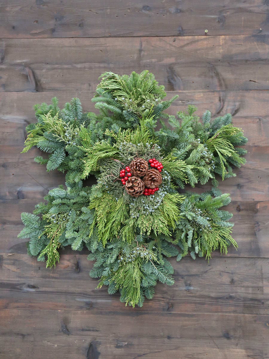 Fresh Mixed Snowflake Wreath 24in