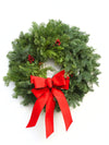 Simple, classic, and naturally beautiful, this fresh evergreen wreath captures the clean, timeless look of the Pacific Northwest. Accented with small clusters of bright red berries and finished with a bold red bow, it offers just the right touch of festive color while keeping a traditional, understated style.