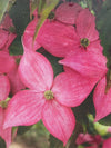 A spectacular dogwood featuring huge, deep pink to fuchsia flowers in the spring. Purple pink fruits in summer that attract birds. Fall color of red to purple leaves.
