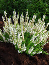 Commonly known as Scotch Heather, 'Spring Cream' is a striking, low-growing evergreen shrub that brings a fresh, luminous glow to your landscape! Known for its unique foliage that emerges in a bright creamy-white before maturing to a lush green, this variety offers multi-seasonal interest. With its upright spikes of dainty white flowers, it is an excellent choice for adding texture and contrast to borders, rock gardens, or decorative patio containers.