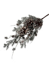 This stunning artificial spray features a harmonious blend of natural elements, meticulously crafted for a realistic and enchanting look. It showcases generous clusters of varying sizes of natural pinecones, beautifully interspersed with delicate grey-green cedar foliage. The entire piece is generously dusted with sparkling faux snow or frost, giving it an authentic, glistening winter appeal.