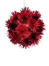 This eye-catching ornament is a playful explosion of texture and shimmer. It features a central core heavily dusted with sparkling red glitter, from which numerous smaller, spiky tinsel balls emerge. Each individual tinsel "burst" is crafted from thin, metallic red strands, creating a dynamic, multi-directional shimmer that catches the light from every angle.