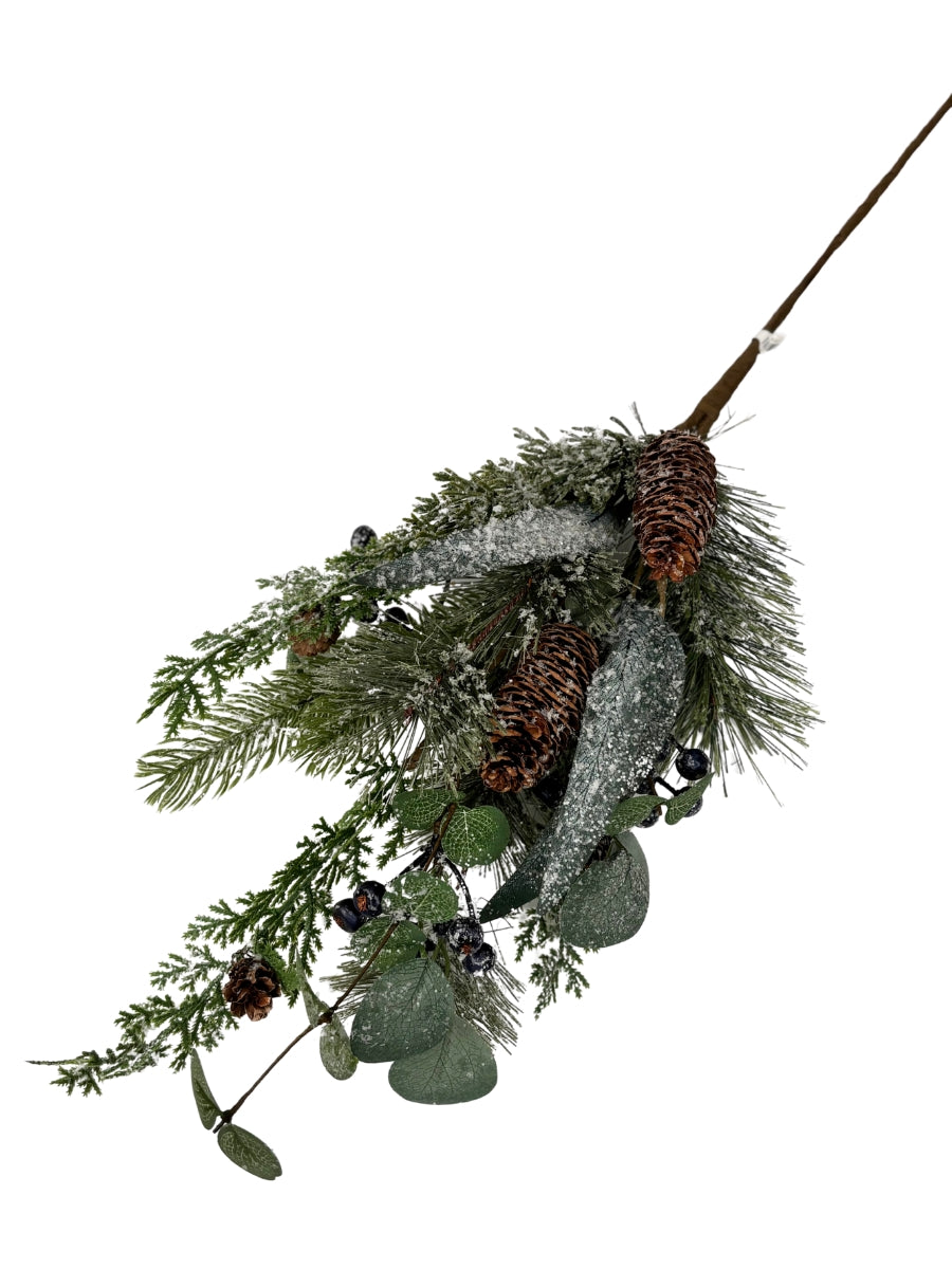 Snow Pine Berry Cone Spray Green/Blue 22''