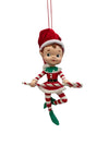 Add a playful touch to your holiday décor with the Dancing Candy Elf Ornament! This whimsical elf is dressed in festive red and white striped attire, complete with a bright green collar and a classic Santa hat trimmed in soft white. The elf holds a cheerful candy cane, ready to dance its way into your Christmas tree. Crafted with charming details and vibrant colors, this ornament brings joy and personality to any holiday setting.