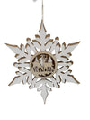 Design: Intricate multi-layered wooden snowflake with a detailed deer and forest scene cutout.