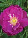 Purple Pavement™ is a rugged yet elegant Rugosa rose that excels in challenging climates, coastal gardens and smaller landscape spaces. Despite its name, this beauty isn’t a groundcover rather, it forms a rounded, compact and bushy shrub with exceptional hardiness and dependable performance. Its reddish‑purple to violet‑mauve semi‑double blooms stand out vividly against deeply textured, crinkled green foliage. Golden centers add a warm glow, and in autumn the plant is adorned with bright red hips that extend its season of interest.