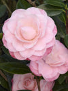 Experience luminous late-winter beauty with the exquisite Camellia japonica ‘Nuccio’s Pearl’, a timeless garden classic celebrated for its pure white, fully double blooms delicately edged in orchid-pink blush. These graceful, formal flowers glow against the plant’s glossy, dark green evergreen foliage, creating a sophisticated display from late winter into spring.
