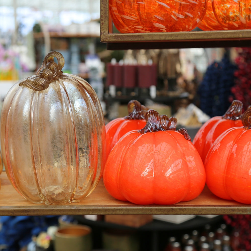 Our glass pumpkin collection is a fantastic seasonal choice that offers timeless elegance. These pieces catch the light beautifully and create a stunning focal point. It's a treasure you'll enjoy year after year.