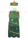 Festive Print: The apron features a cheerful, all-over pattern of stylized Christmas trees in vibrant holiday colors (red, green, blue, and gold).