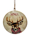 Embrace the cozy charm of a winter wonderland with our delightful Rustic Deer & "NOEL" Iron Disc Christmas Ornament. This unique, flat disc ornament features a beautifully detailed illustration of a majestic stag, sporting a festive red and black plaid scarf, instantly bringing warmth to your holiday decor. Above the deer, the word "NOEL" is elegantly scripted, and the entire scene is set against a subtle, textured background adorned with delicate white snowflakes.