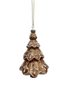 This delectable-looking ornament is lovingly crafted to resemble a classic, tiered gingerbread Christmas tree cookie. It features a rich gingerbread-brown finish, generously dusted with shimmering glitter that mimics granulated sugar. Each bough is beautifully outlined with raised, snowy white "icing" details, creating a truly irresistible and festive look.
