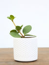 Small, succulent, almost round, slightly thicker than many other Peperomias and with faint light green striping. Perennial epiphyte with soft, trailing stems makes this a wonderful treat to a higher spot to showcase the stems and leaves!